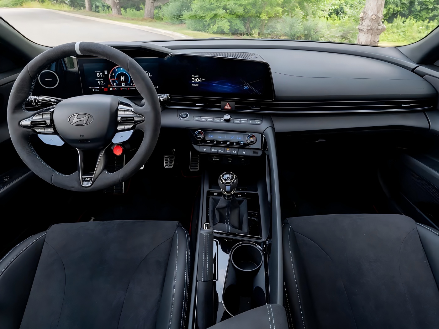 आन्तरिकको सर्तमा, नयाँ कारको समग्र लेआउट एलान्ट्रा एन को धेरै फरक छैन, तर यो 12 बजे स्थिति मार्करको साथ "n प्रदर्शन" एल्कर स्टीयरिंग व्हिलसँग सुसज्जित छ। यस बीच, फ्रन्टल प row ्क्ति निलो सीटबेल्टको साथ सुसज्जित छ, ढोका सिलियनहरू एन प्रदर्शन धातुको छेउछाउका गार्डहरूसँगै फिट हुन्छ, र कारले पनि एन प्रदर्शन फ्लोर कटौती गर्दछ। उदाहरण को लागी, म्यानुअल पार्किंग ब्रेक लीभर, गियर शिफ्ट लौवर, र आर्मेस्ट बक्स आर्मर एल्कन्टारमा बेर्ने छन्। अन्तमा, ढोका ह्यान्डल बत्तीहरूमा एक "TCR संस्करण" लोगो छ, जुन भावनात्मक अपीलले भरिएको छ।